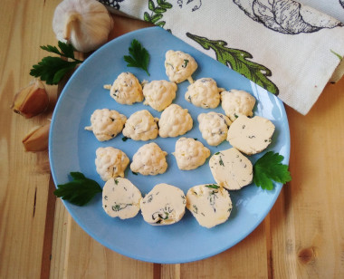 Когда-то видела такой рецепт на просторах интернета, но посчитала, что мне такое масло ни к чему. А вот сейчас случайно нашла и тоже захотелось приготовить такое ароматное масло, а потом положить кусочек в борщ) Да и в другие блюда можно добавить, в зажарку, например. Масло взяла хорошее, качественное. Ведь от этого будет зависеть вкус всего будущего блюда. Чеснок натерла на мелкой терке, а петрушку порубила помельче. Масло с остальными ингредиентами отлично размялось вилкой. Часть масла я выложила в формочки для льда, а часть просто завернула в пищевую пленку. После заморозки достала ароматные "ягодки", а колбаску нарезала на шайбочки. Затем все сложила в пакет для заморозки. Мне кажется, получились замечательное порционное масло. Оно даже после заморозки имеет приятный запах петрушки и чеснока. Спасибо за идею, теперь буду пробовать добавлять заготовку в непосредственно в блюда.