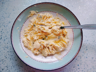 Чеснок очистите от шелухи, натрите на мелкой терке или пропустите через пресс. Так он лучше отдаст свой аромат и вкус маслу.