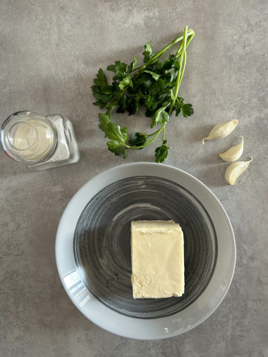 Как сделать чесночное масло? Для приготовления чесночного масла необходимо подготовить: мягкое сливочное масло, зелень петрушки, соль и чеснок. Масло заранее достаньте из холодильника. Примерно за 20-30 минут до начала приготовления по этому рецепту. Для ускорения процесса размягчения масла можно нарезать его на мелкие кусочки.