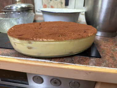 Кофе, яйца и сахара у меня, естественно были. Алкоголь по понятным причинам не использовала.Маскарпоне я заменила рикоттой, савоярди - простым сахарным печеньем.