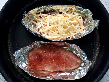 Фольгу заверните вокруг куска мяса в виде лодочки.