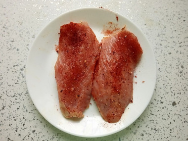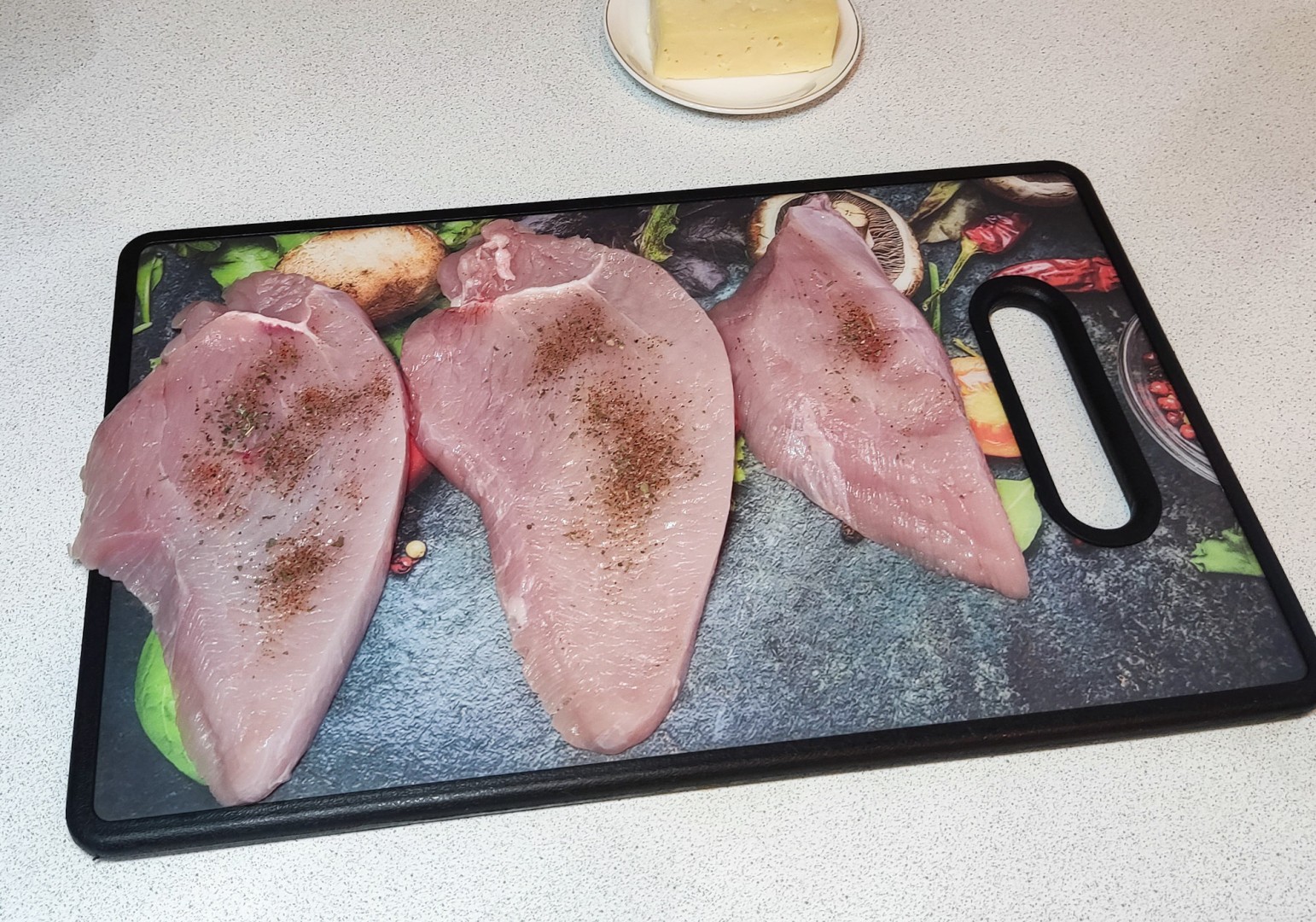 Как сделать индейку с сыром в духовке? Подготовьте для этого необходимые ингредиенты. Филе индейки нарежьте на порционные кусочки поперек волокон. Сыр берите любой на своё усмотрение, главное, чтобы его легко можно было натереть на терке. Сыр придаст мясу индейки основной вкус.