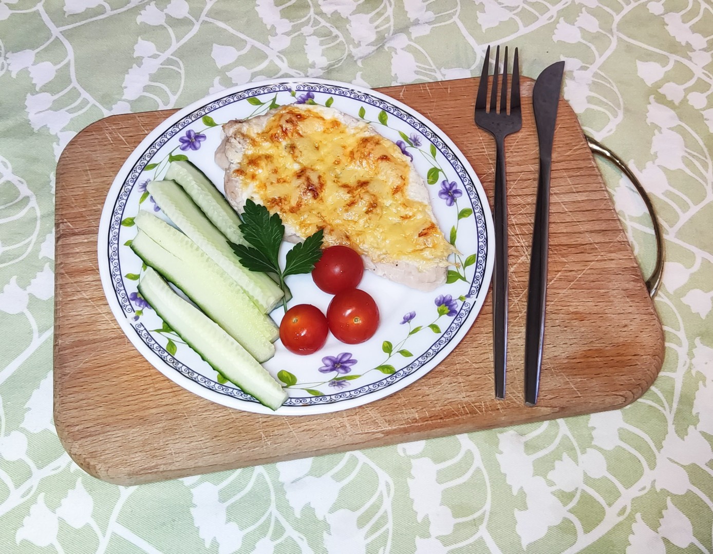 Индейка с сыром в духовке - одно из тех блюд, которые в нашей семье готовятся наиболее часто. Потому что такой ужин - это быстро, вкусно и полезно. Иногда добавляем гарнир к индейке, но чаще всего подаём просто с овощами.