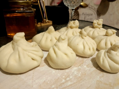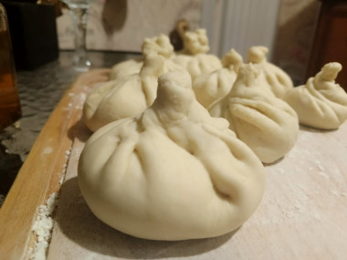 Выпускайте воздух и формируйте хинкали, которые затем выкладывайте на стол..