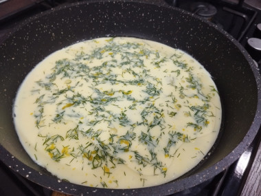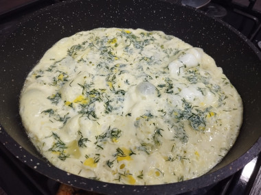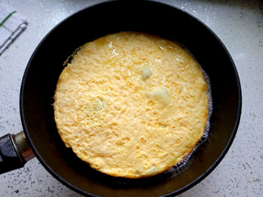 Затем накройте сковороду крышкой и жарьте омлет еще 3-4 минуты до готовности.