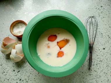 Яйца разбейте в глубокую миску. Если яйца мелкие, возьмите 4 штуки.