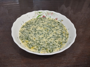 Яйца взбила слегка,добавила молоко, соль, измельчённую зелень укропа для аромата и перемешала. Вылила на сковороду,накрыла крышкой и готовила до готовности. Омлет получился очень вкусным!