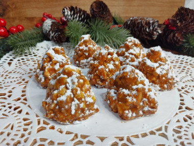 Готовые шишки слегка посыпьте сахарной пудрой и подайте к столу. Приятного аппетита!