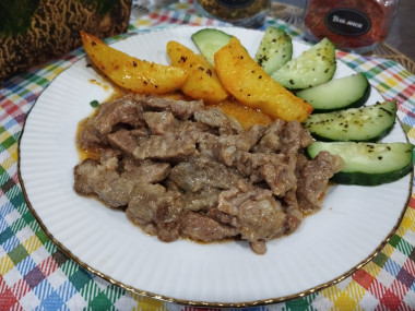 Аппетитное и вкуснейшее мясо со сливочным соусом получилось к ужину. Подавала с дольками картофеля.