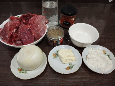Как сделать говядину по-строгановски? подготовьте для этого необходимые ингредиенты. Для приготовления выбирайте молодое мясо без костей.