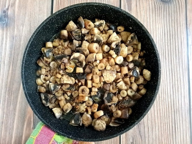 Шампиньоны у меня крупные, поэтому разрезала их на 4 части, а также нарезала кружочками ножки.