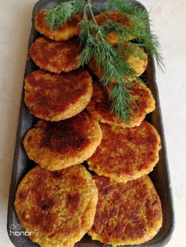 Горох я тоже замочила на ночь, к утру он разбух раза в 2-3. Варила в пропорциях, приведенных в рецепте примерно час. При этом горох хорошо разварился, вода почти испарилась. Остатки жидкости слила через сито. Лук с морковью зажаривала на горчичном нерафинированном масле для дополнительного аромата и вкуса. "Фарш" пробила блендером, но не стала добиваться гладкой массы, оставила вкрапления горошка и овощей, мне так больше нравится) Половину муки заменила на картофельный крахмал для более нежной консистенции и дополнительной клейкости. Масса получилась нежная и тягучая, но легко лепилась в шарик. В муке тоже легко обвалять, с этим проблем не было совсем) Обжаривала котлетки на горчичном масле. Действительно, они очень быстро готовятся на сковороде. От излишков масла избавилась при помощи бумажного полотенца. Котлетки просто чудо! Они отлично держат форму, при этом мягкие, нежные и сочные! А ещё у них яркая румяная корочка. На вкус слегка сладковатые, думаю, это заслуга моркови. Рецепт отличный, рекомендую!