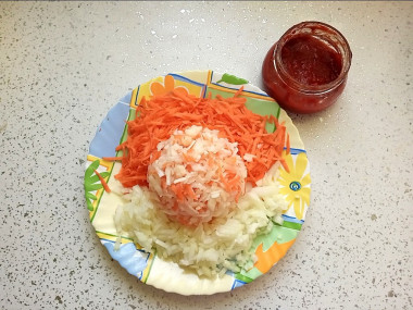 Теперь подготовьте все остальные ингредиенты. Квашеную капусту можете заменить на маринованную.