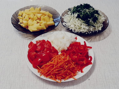 Традиционно овощные супы готовлю на концентрированном овощном бульоне. В этот раз рискнула приготовить щи без зажарки, соответственно лук не использовала.