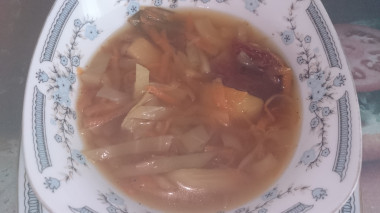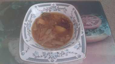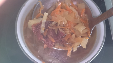 Результат порадовал не только вкусом, но и ароматом, и цветом. Бульон насыщенного характерного для щей цвета. Густой, как и обещает автор в рецепте, наваристый. Но без тяжести мясной составляющей.