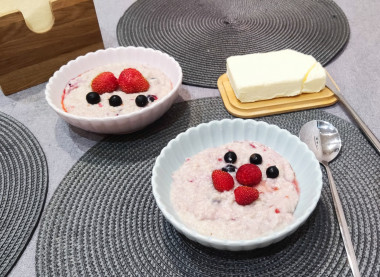 Не секрет, что ребёнка накормить овсянкой сложно. Но овсяная каша с ягодами на молоке может стать палочкой-выручалочкой для мам маленьких приверед. Молочко у меня безлактозное, жирность 1.8%, а овсяные хлопья я взяла быстрой варки. Молоко я совсем немного разбавила водой - так привычнее. Сахара добавила немного, потому что ягоды были достаточно сладкие. Использовала свежие ягоды с дачи - клубника, малина, чёрная смородина. Ягоды добавила, когда каша была практически готова. Следом забросила кусочек сливочного масла и всё хорошенько перемешала, чтобы ягоды помялись и каша обрела приятный необычный колер. Блюдо получилось вкусное, нежное, привлекательное на вид. Данный рецепт - прекрасный способ разнообразить завтраки, а также отличная попытка сделать нелюбимую кашу любимой. Благодарю!