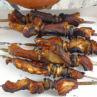 На мой взгляд, количество соуса на 2 кг мяса маловато будет, но шашлыки удались, итоговая убедительная.
