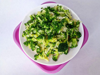 Брокколи ополосните. Разберите капусту на небольшие соцветия.