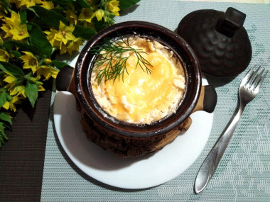 Верните горшочки обратно в духовку уже без крышек. Запекайте еще около 10 минут. Сыр должен расплавиться. Готовое блюдо выньте из духовки.