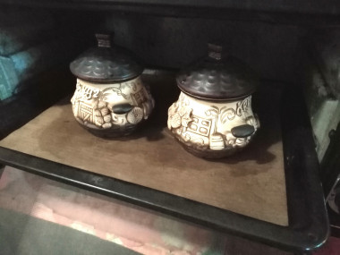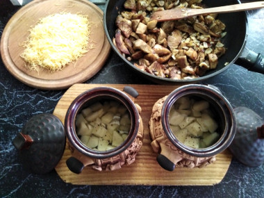 Люблю блюда в горшочках. Понравился рецепт "картошка в горшочках с грибами и сыром", который я нашла через поисковик по ингредиентам. Все ингредиенты у меня были, а шампиньоны я заменила другими грибами, автор пишет, что подойдут любые. Я использовала замороженные отварные грузди, которые нашла при разборке морозильной камеры. По совету автора я решила дополнительно обжарить грузди на подсолнечном масле с луком. Горшочки у меня литровые, поэтому количество ингредиентов увеличила вдвое с помощью калькулятора сайта, что очень удобно. Выложила в горшочки слоями картошку, жаренные грибы с луком, залила сливками, добавила специи, как в рецепте. Готовила на противне по рекомендации автора. Большое спасибо, сливки действительно немножко убежали, противень легче помыть нежели духовку) В конце добавила натертый сыр, выбрала гайсин, он хорошо плавится и очень вкусный. Готовить картошку с грибами и сыром не особо сложно. Дольше всего жарила грибы, так как они замороженные и было много влаги. Получилось великолепное блюдо. Очень ароматное, сытное и потрясающе вкусное! Спасибо автору!