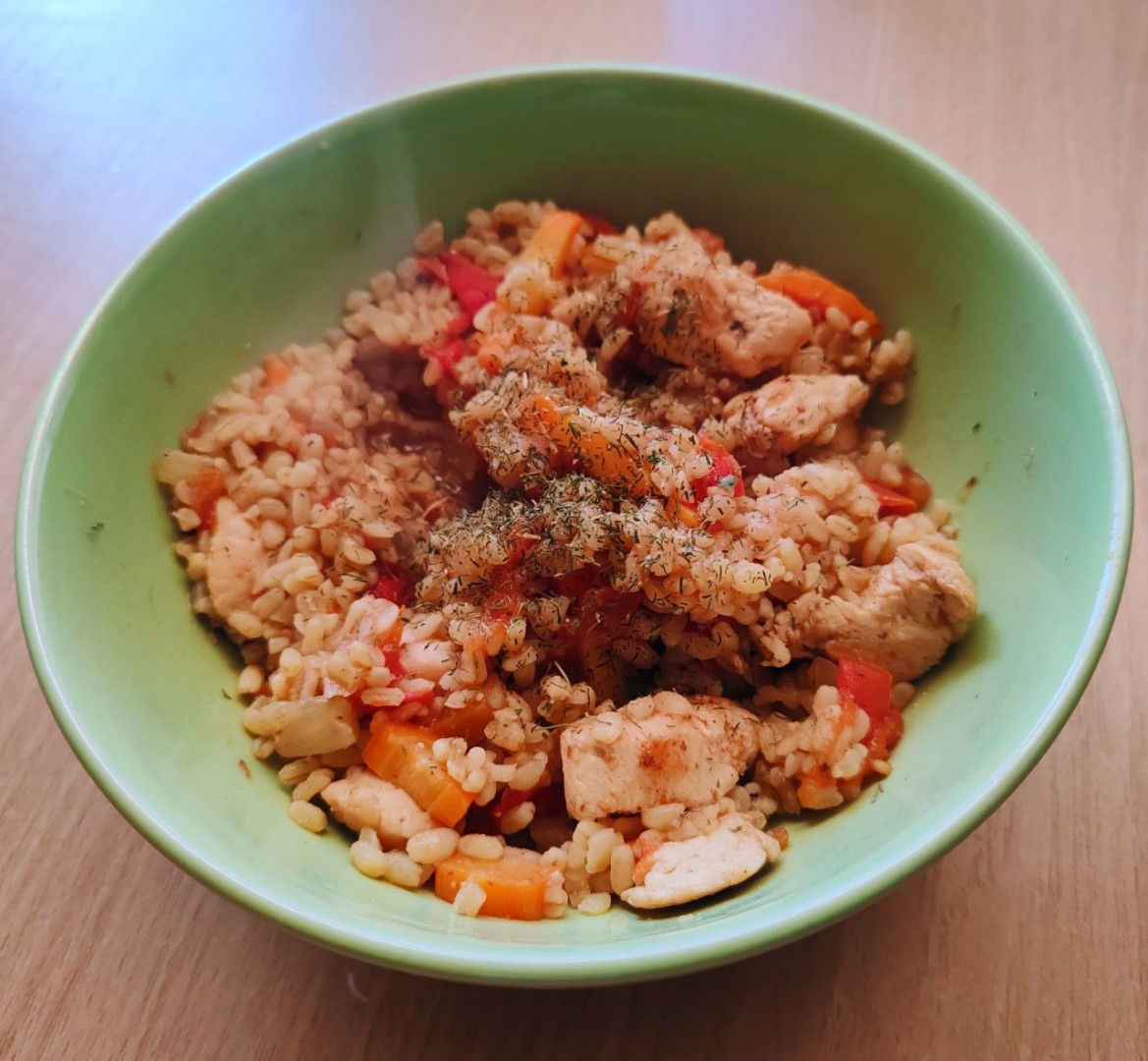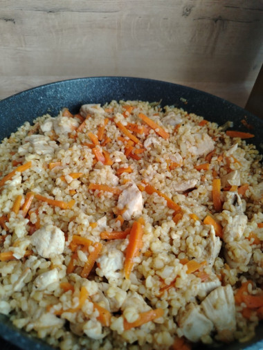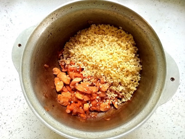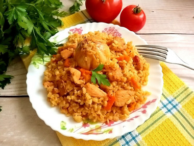 Дочка впечатлилась турецкой кухней и попросила приготовить булгур. Я с этой крупой знакома только теоретически, поэтому для начала нашла на сайте рецепт плова из булгура с курицей.
