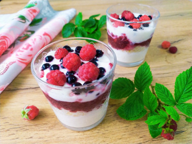 Как сделать вкусный ягодный десерт? Подготовить ингредиенты. Для приготовления слоеного десерта со взбитыми сливками и ягодами нам понадобится: жирные сливки для взбивания (33-35% жирности), бисквитное или сахарное печенье, сахар, смесь ягод красной и черной смородины (можно взять какой-то один вид) и смесь лесных ягод (черника, земляника, малина и т. д.)