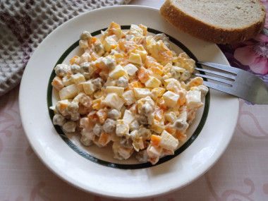 Мне очень понравился простой рецепт салата из доступных всем продуктов. Это вкусно! Всем советую! Автору спасибо)
