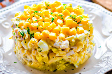 Мой любимый салат с кукурузой яйцом курицей и сыром! Самые любимые продукты в одном салате! Главное подойти творчески. Сделала на семейный праздник,