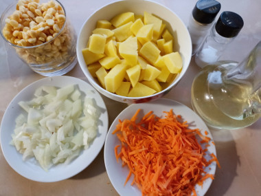 На горячую сковороду налейте немного растительного масла и обжарьте измельченные овощи 3-5 минут на небольшом огне.