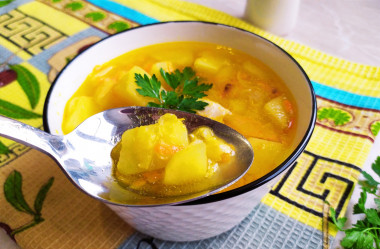 Проварите суп еще пару минут и снимите кастрюлю с огня. Готовый суп разлейте по тарелкам и подавайте к столу в горячем виде. Приятного аппетита!