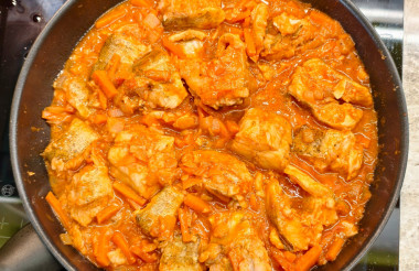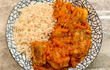 Очень интересный рецепт, получилось очень вкусно даже без добавления дополнительных специй - только соль и черный молотый перец. Как же удивительно сочетаются сладковатая морковь, томатная паста и рыбка, а соус просто пальчики оближешь, идеально с рисом.