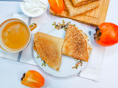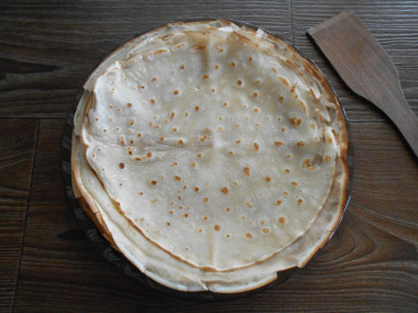 Подавайте блины горячими со сметаной, медом, вареньем или наоборот, с чем-нибудь соленым — икрой, рыбой. Хорошо такие блины подходят для фарширования — они тонкие и не рвутся. Приятного аппетита!
