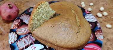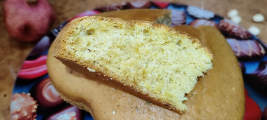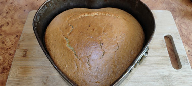 Бисквит хорошо поднимается при выпечке. Выньте его из духовки по прошествии необходимого времени, остудите и нарежьте на порционные кусочки.