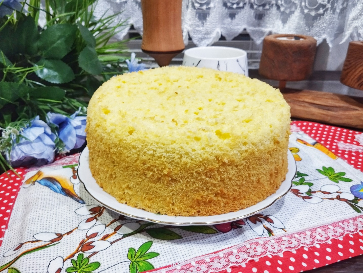 Это пока лучший рецепт бисквита, который я пробовала на сегодняшний день — он действительно очень пышный, совершенно ровный и не крошится при нарезке.