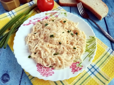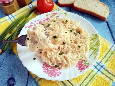 Обычно я поджариваю такую смесь, но в этот раз вышло абсолютно другое блюдо. Макароны получились в густом сырном соусе, который аппетитно тянется за вилкой. Просто великолепно! Нежно и вкусно! Подавать нужно обязательно в горячем виде.