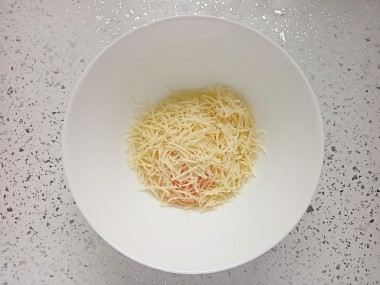 Первым делом поставьте кастрюлю с водой для варки пасты на плиту. Пока она закипает, займитесь другими продуктами. Сыр натрите на крупной терке. Берите качественный и натуральный сыр, без заменителей молочных жиров. Лучше всего подойдет твердый или полутвердый, главное, чтобы он хорошо плавился и был вкусным.