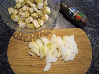 Шаг 1. Как пожарить баклажаны с луком и чесноком на сковороде?