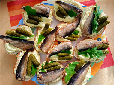 Приготовила сегодня бутерброды со шпротами яйцами и соленым огурцом по вашему рецепту. Рецепт простой и без заморочек, мне понравился