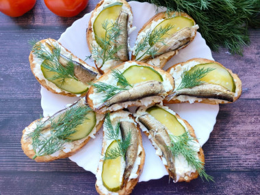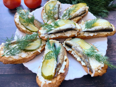 Украсьте бутерброды веточками укропа. Подавайте к столу. Приятного аппетита!