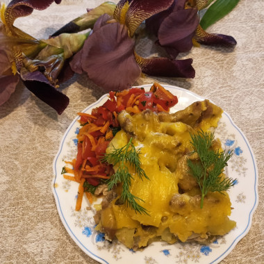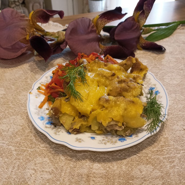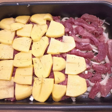 Сегодня мне нужно было приготовить обед на шесть человек и я выбрала этот замечательный рецепт. Мясо в духовке с картошкой и сыром - блюдо, актуальное как в будни, так и для праздничного стола. Из простых и доступных продуктов можно приготовить массу различных вариаций: всё зависит от нашей фантазии. Самый простой вариант - это уложить картошку с мясом в посуду для запекания, накрыть фольгой и поставить в духовку, а в самом конце посыпать блюдо сыром. Я приготовила в глубокой форме, повторяя слои, как советует автор рецепта: так и мяса в блюде получилось достаточно и очень сочно. Рекомендую этот замечательный простой рецепт, готовьте с удовольствием. Автору большое спасибо!