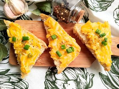 В сырную массу вы можете также добавить натертое на терке вареное куриное яйцо — бутерброды будут еще сытнее.