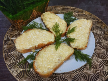 Сыр я натерла на мелкой тёрке,добавила измельчённый чеснок и вместо майонеза добавила сметану! Все смешала и выложила на ломтики батона. Запекала в духовом шкафу при 180° 15 минут.