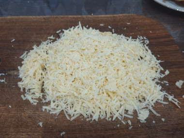 Первым делом включите разогревать духовку. Температуру поставьте 180°С, режим верх-низ, без конвекции. Пока духовка греется, вы успеете подготовить бутерброды к запеканию. Сначала натрите сыр. Я бы советовала сделать это на средней терке — тогда сырная масса получится более нежной.