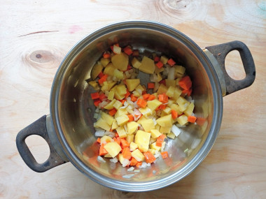Зажарку для супа делала сразу в кастрюле, так грязной посуды остаётся по минимуму. На 1,5 л воды суп получился достаточно густой