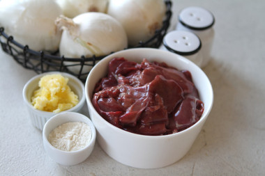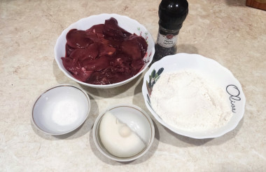 Калорийность продуктов: Перец черный молотый, Растительное масло, Соль, Лук репчатый, Пшеничная мука, Печень говяжья