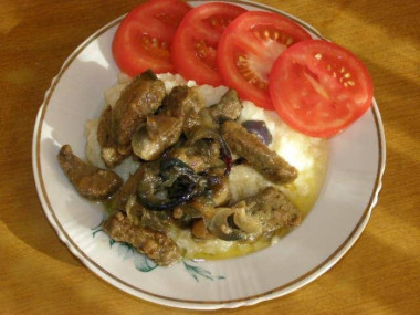 Печень с луком готова! К ней отлично подойдет гарнир из риса, гречки или картофельного пюре. Приятного аппетита!
