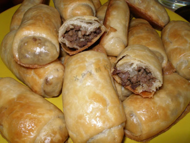 Ellisa, рецепт замечательный! Сегодня приготовила с говяжьим фаршем. Начинка немного суховата, но тесто - просто супер!!! Муж в восторге. Сказал, что завтра заберет все оставшиеся на работу. Рулетики такие аккуратненькие, есть очень удобно, начинка не вываливается. У меня получилось 16 шт. Хотелось бы сделать с яблоками. Вот только не знаю, сырые подойдут? Или надо протушить? Вам не встречался такой вариант начинки?