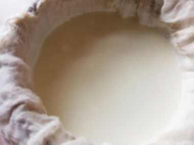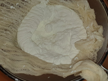 В миске, кстати, соберется большое количество сыворотки, можете использовать ее для приготовления других блюд.