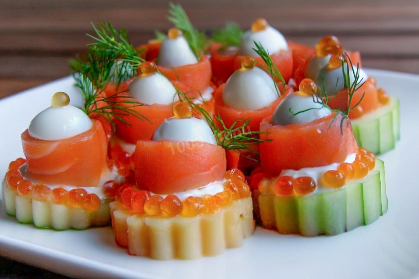 Рекомендую еще одну закуску из красной рыбы и сыра в тарталетках. Красивое блюдо.