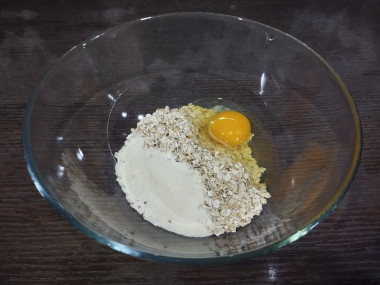 Добавила к хлопьям манку,яйцо, немного соли и перемешала.